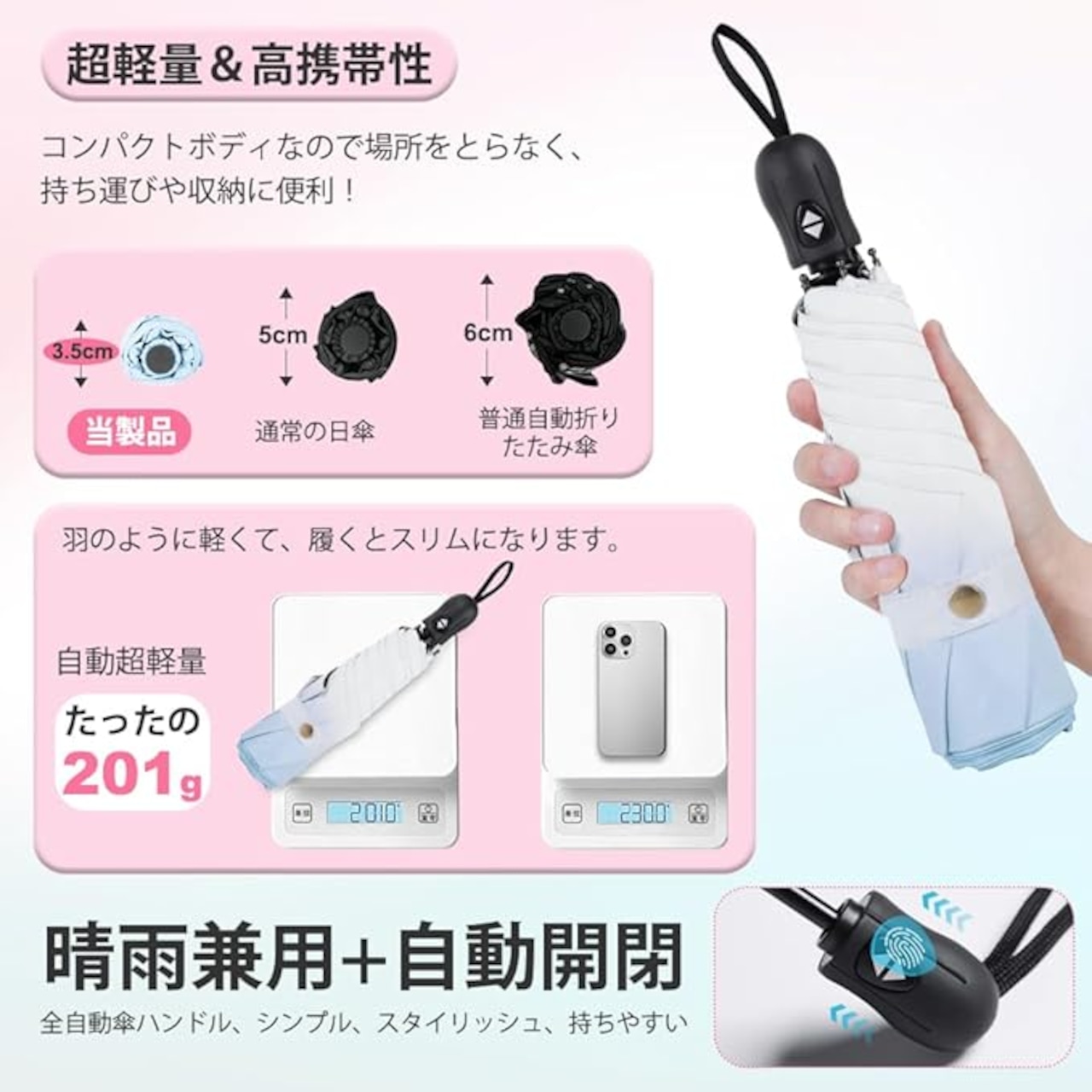 折りたたみ日傘 【201gJIS認証】!安全式自動開閉 超軽量 折りたたみ傘 100遮光遮熱 折り畳み日傘 紫外線遮断 折り畳み傘 晴雨兼用 梅雨対策 耐風撥水 コンパクト携帯便利 完全遮光 熱中症対策 肌を守る 折りたたみ レディース 子供 男女兼用 収納ポーチ付き プレゼントに最適 a