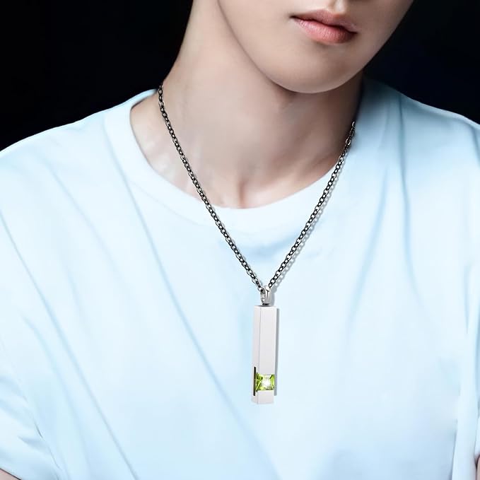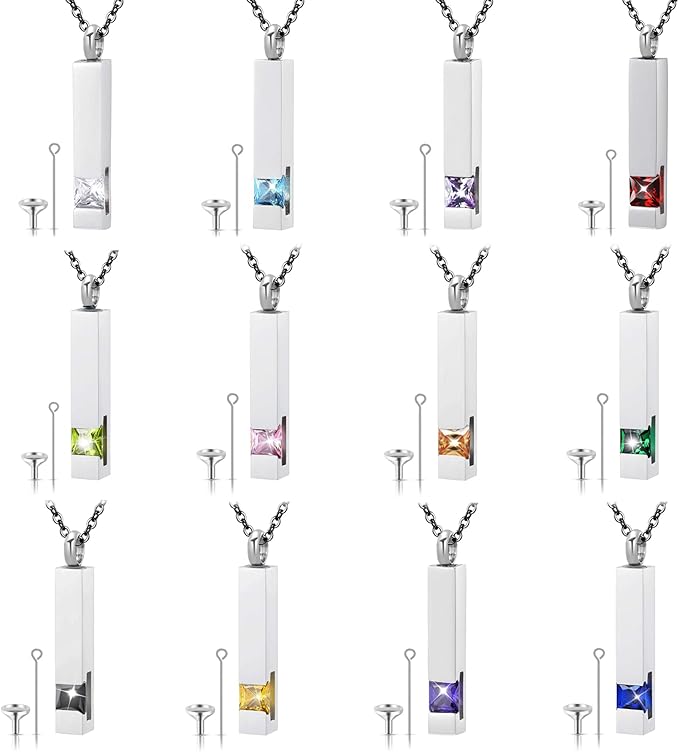 [Flongo] 誕生石ネックレス ジルコン ネックレス直方体 遺骨スティック 刻印無料 漏斗付き スティック メモリアル アクセサリー ペアネックレス カップル お揃い ステンレス 手元供養 男女兼用 記念日 誕生日 プレゼント シンプル 12色(シルバー) b
