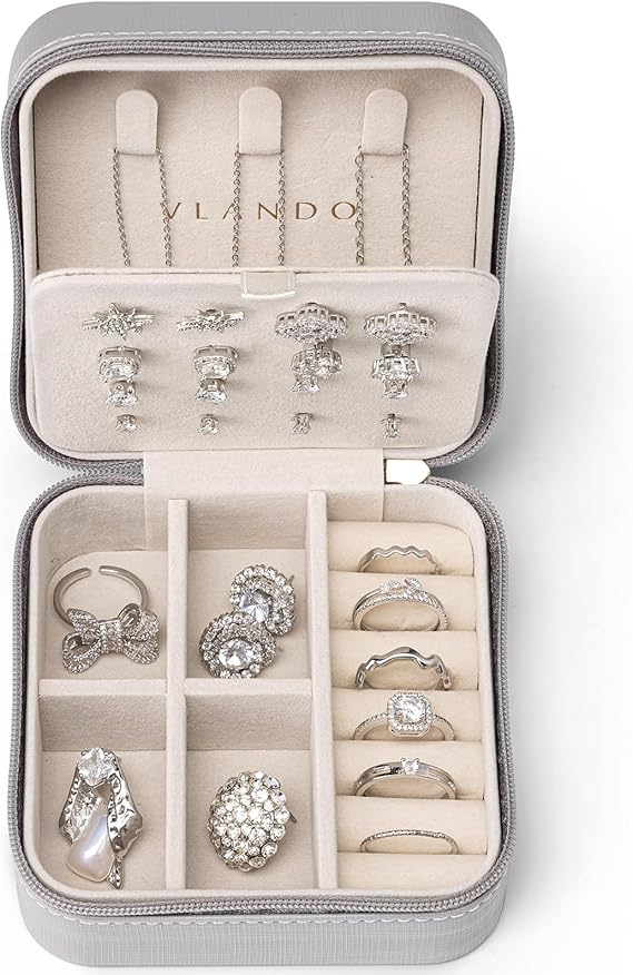 【持ち運びに便利】Vlandoミニジュエリーボックスは10.5x10.5x5.5cmの大きさで持ち運びしやすいです。お気に入りのアクセサリーをどこにでも持ち運べます。外出、旅行、宿泊などのアクセサリーの保管に適しています。