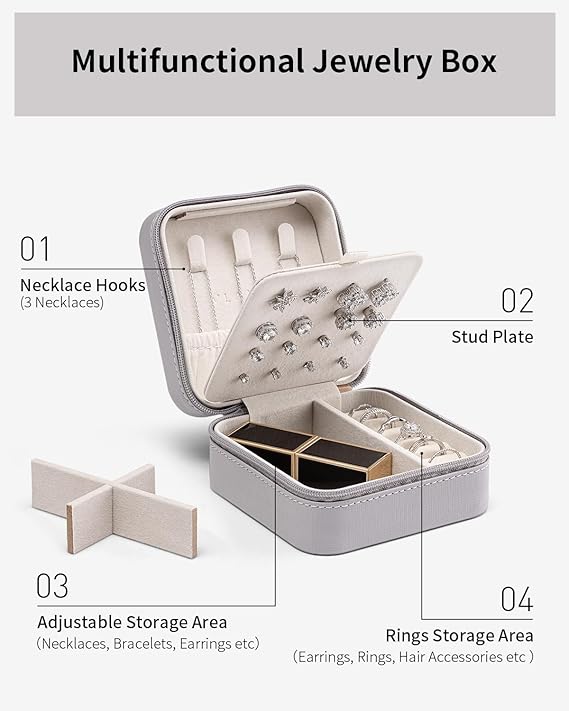 Vlando 正方形アクセサリーケース 持ち運び 小物入れ ジュエリーケース 持ち運び イヤリング 収納 誕生日プレゼント-グレー a