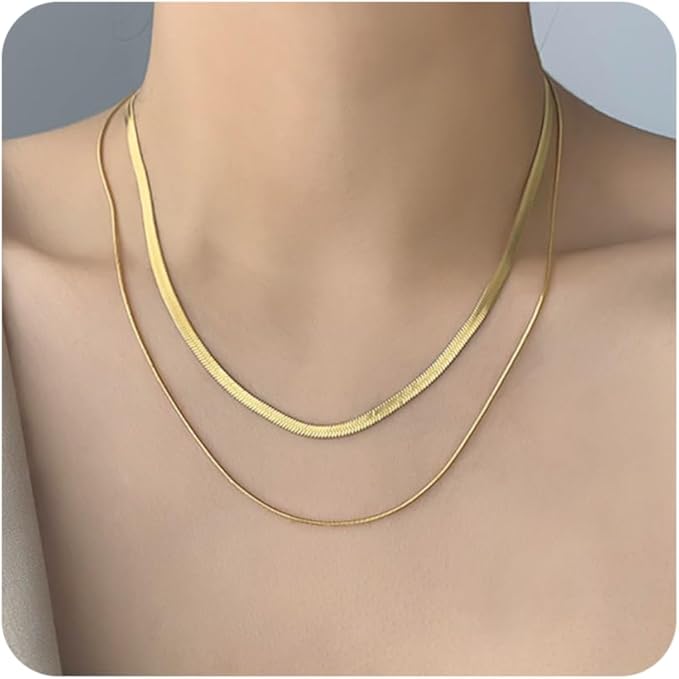 [Tasiso] レディース ネックレス スネークチェーン 二本 セット シルバー ゴールド ステンレスチェーン 金属アレルギー対応 細い 極細 繊細 鎖 細め チェーンネックレス メンズ プレゼント ギフトBox付き