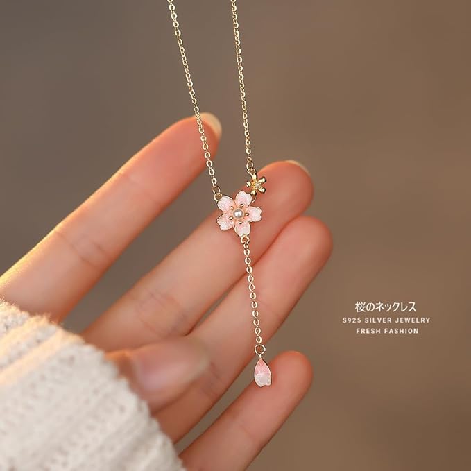 [K.L.Y] ネックレス レディース 人気 桜 シルバー925 純銀製 金属アレルギー対応 人気 ネックレス ピンクさくら 18K ゴールド 可愛い アクセサリー 記念日 誕生日 プレゼント a