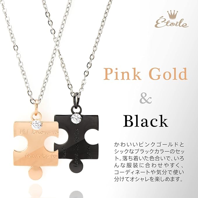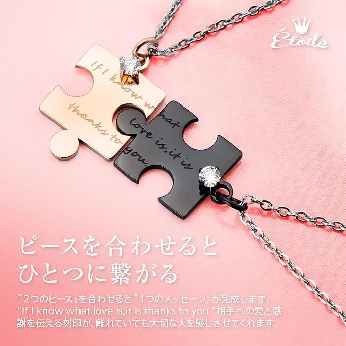 [Étoile] [エトワール] ペアネックレス パズル ネックレス ペアペンダント カップル お揃い 人気 ペア アクセサリー CZダイヤ サージカルステンレス 金属アレルギー対応 誕生日 記念日 プレゼント ジュエリーボックス付き