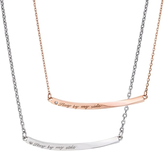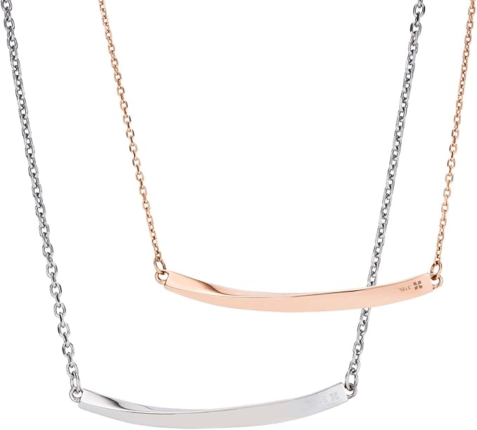 [ホワイトクローバー] ペア ネックレス アレルギーフリー サージカルステンレス316L ダイヤモンド ツイスト 両吊り ピンク&シルバー 4SUP079GO&4SUP079SV a