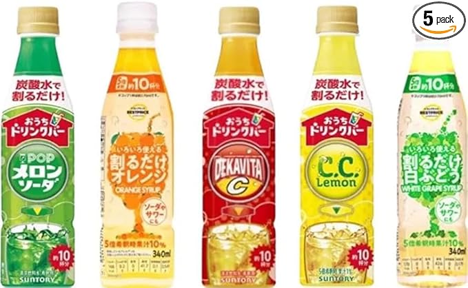 おうちドリンクバー (CCレモン+POPメロンソーダ+デカビタC+割るだけオレンジ+割るだけ白ぶどう ) 濃縮飲料 340ml(約10杯分) 計5本セット+サンキューカード a