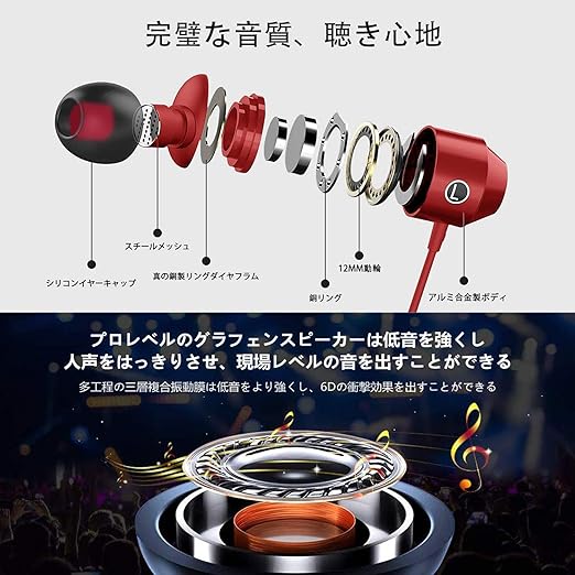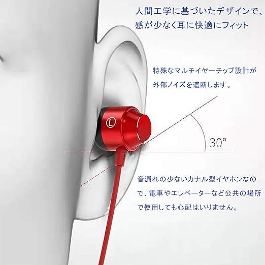 【2023秋 イヤホン3.5mm 有線 マイク付き リモコン付き ヘッドホン コンパクト ノイズ遮断 重低音 クリア通話 音漏れ防止 カナル型 磁気 マグネット式Android/iPhone/PC多機種対応 イヤフォン(レッド) a