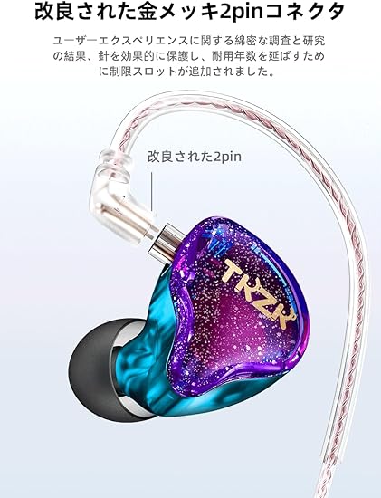 Yinyoo カナル型 イヤホン 有線 イヤモニ型 TKZK TK01 10mmダイナミック ステレオ インイヤー モニター 中華 イヤフォン マイク付き ゲーミング イアフォン Wired Earphones リケーブル対応 (パープル・マイク付き) a