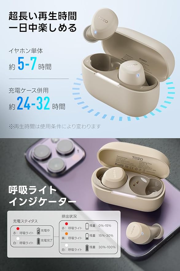 TOZO A1-Mini ワイヤレスイヤホン 2025 極上の音体験 小型 超軽量 Bluetooth 5.3 IPX5防水規格 32時間再生 専用アプリ対応 カスタムEQモード iOS/Android対応 音声アシスタント対応 接続瞬時 長距離接続 急速充電 Type-C 密閉型 イヤホン (Mini, ブルー) 技適認証済み商品 a