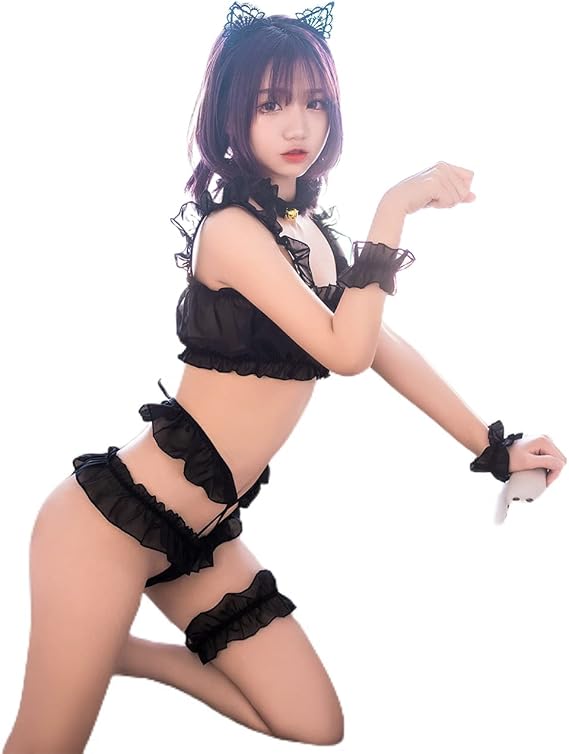 [SENMHS] 猫コスプレ ランジェリー ベビードール キャット セクシー コスプレ キャット コスチューム 衣装 シースルー 過激 下着 コスプレ かわいい レディース ハロウィン クリスマスイベント仮装 大胆 萌え萌え 胸あき 肉球 ネコ耳カチューシャ 7949 (7949ブラック) a