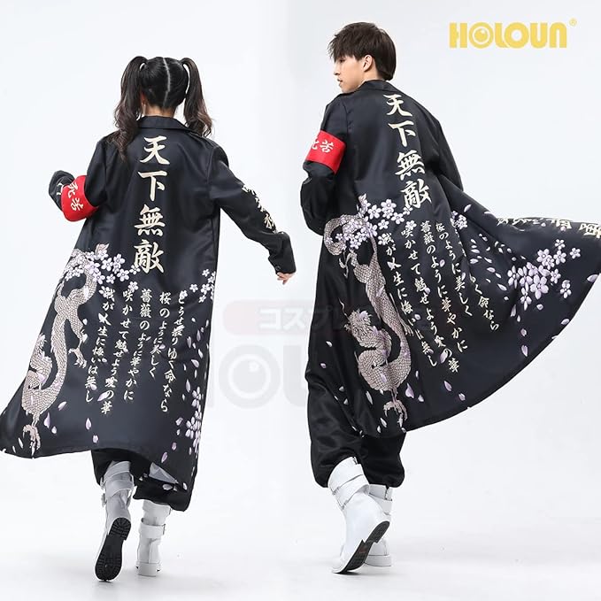 [HOLOUN] ハロウィン特攻服コスプレ衣装 印刷スタイル 暴走族 舞台装 演出服 文化祭 撮影 祭り Cosplayハロウィン仮装 アニメ祝日贈り物 (黑色 S a