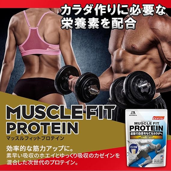 森永製菓 マッスルフィットプロテイン バニラ味 340g ウイダー ホエイ カゼイン グルタミン Eルチン配合 アンチ・ドーピング 国産 a