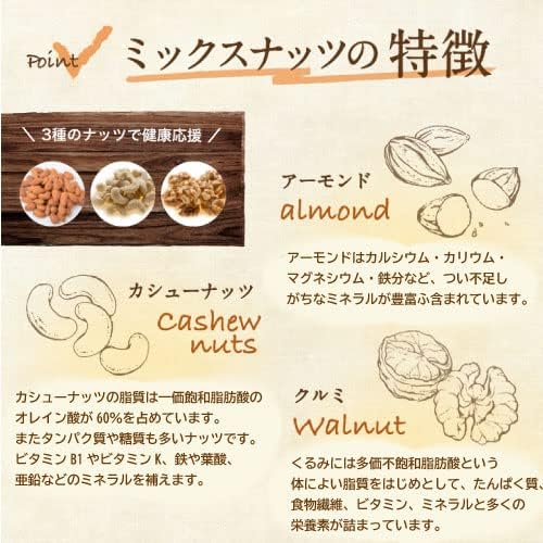 アーモンド、カシューナッツ、クルミのミックスです。無塩・無植物油です。