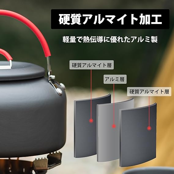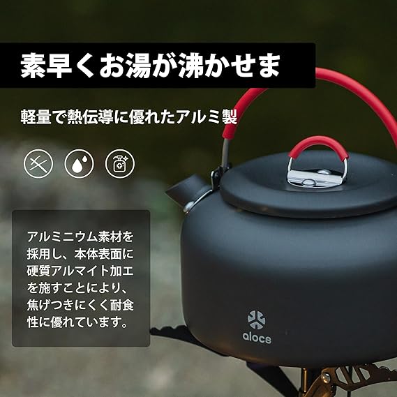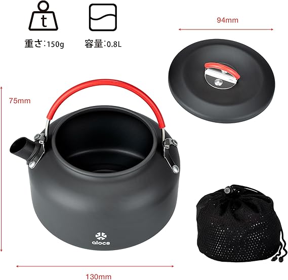 Alocs 0.8Lキャンプケトル ケトル キャンプ 超軽量 キャンプ用品 硬質アルマイト キャンプ やかん 直火対応 ハイキング アルミ キャンプギア 登山ヤカン キャンプ 持ち運び便利 収納袋付き a