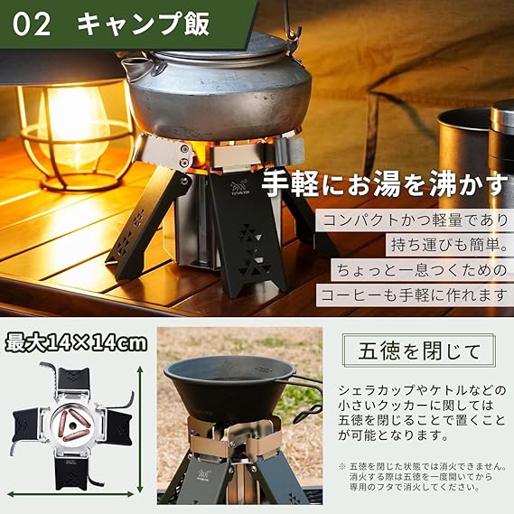 FUTUREFOX FOX-BLAZE (フォックスブレイズ) 五徳付き アルコールバーナー アルコールストーブ アルスト 高火力 コンパクト キャンプ 防災 アウトドア (オリーブ) a