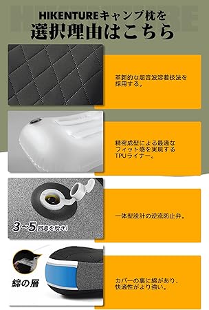 HIKENTURE キャンプ アウトドア 枕 【コットンカバー付き】 携帯枕 超軽量 エアーピロー 旅行 まくら 空気枕 腰枕 コンパクト 収納袋付き トラベル・車中泊・事務室 a