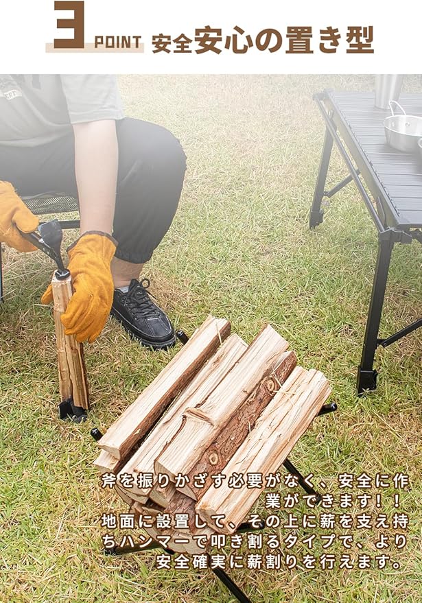 薪割り 薪割りクサビ 薪割り台 置き型 両断クサビ 割り楔 小型 一体型設計 コンパクト 軽量 持ち運び 焚き火 薪ストーブ キャンプ アウトドア 専用収納袋付き(S) a