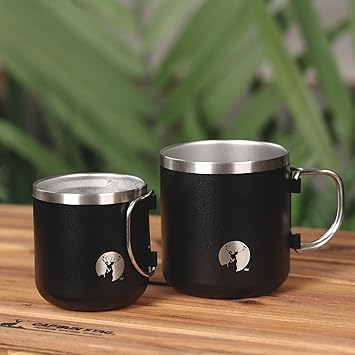 キャプテンスタッグ(CAPTAIN STAG) アウトドア コップ マグカップ マグ カップ タンブラー CS 真空折りたたみハンドルマグカップ 300ml・500ml ステンレス製 シルバー/ブラック UE-3595/UE-3596/UE-3597/UE-3598 a