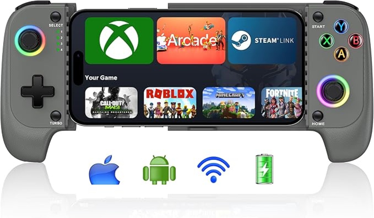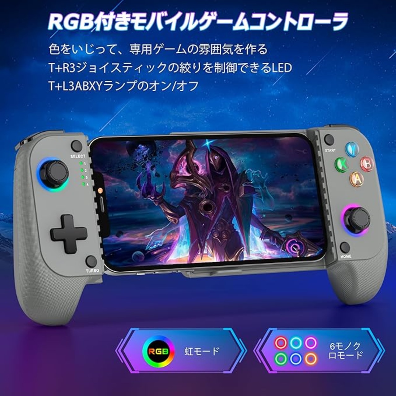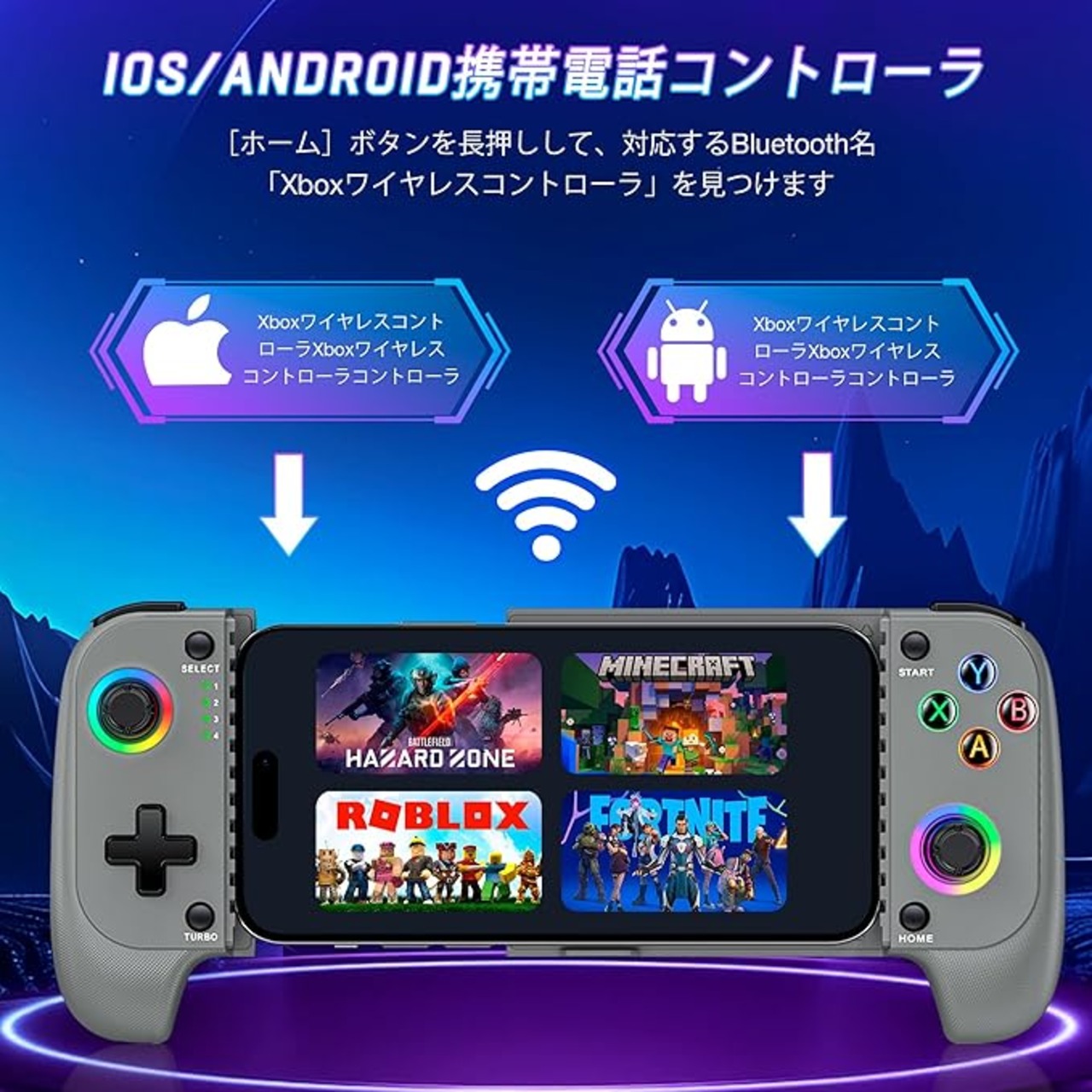 スマホコントローラー- iPhone/Androidに対応、ケースサポート、RGB搭載、ホール効果ジョイスティックがクラウドゲーム、Fortnite、CoDモバイルをプレイするために最適 d