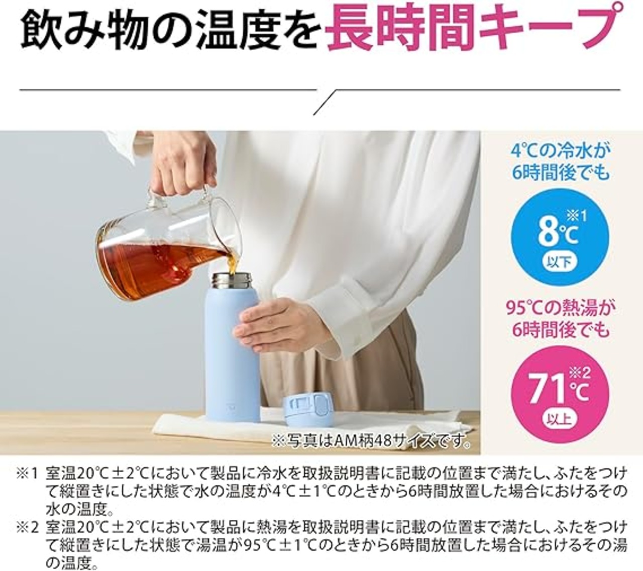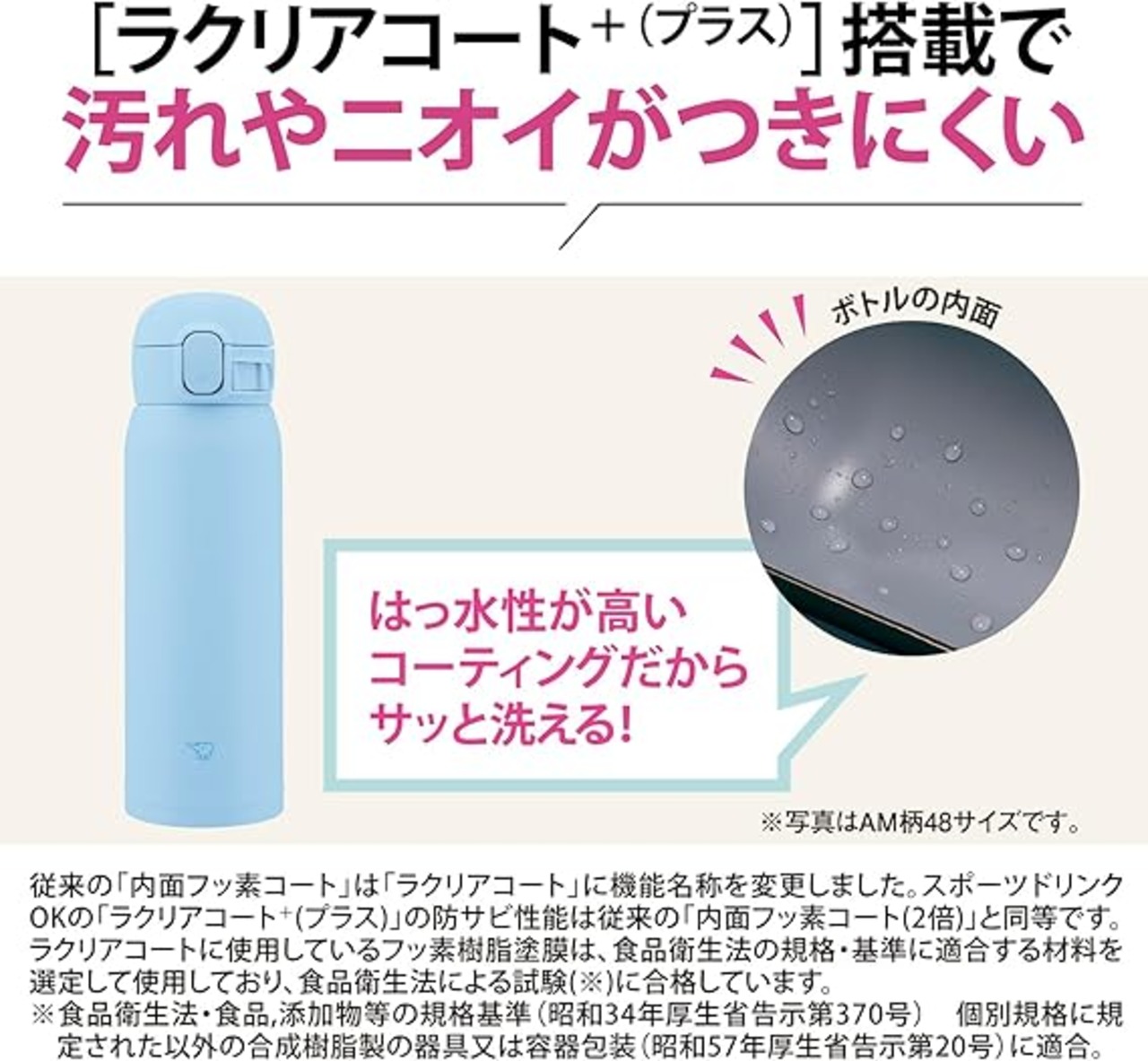 【シームレスせん】象印マホービン 水筒 480ml ワンタッチマグ 軽量&コンパクト お手入れカンタン 保温・保冷 エアリーブルー SM-WS48-AM a
