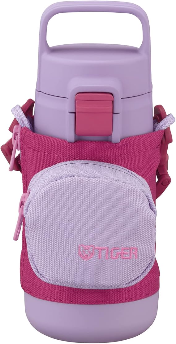 【食洗機対応】タイガー 水筒 350ml 手ぶらでおでかけ マルチポケット付きボトル 女の子 男の子 ワンタッチ 洗いやすい 広口 ハンドル付き サステナブル リサイクル素材 親子コーデ ステンレスボトル パープルプラム MTA-A035VL a
