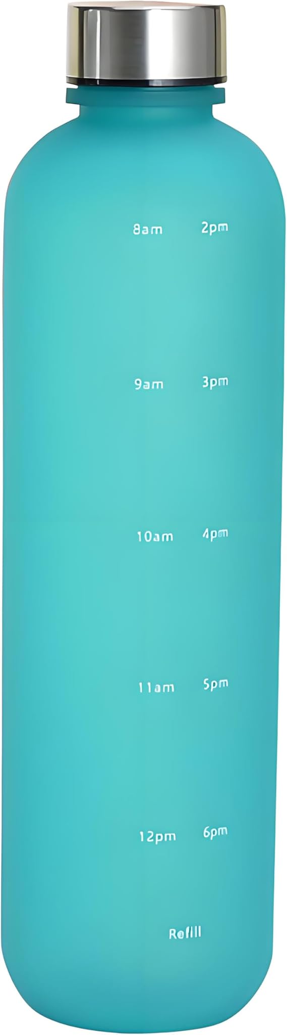 2.ウォーターボトルにはタイムマーカー付き、定期的な水分補給を促し、1000mlの大容量で毎日十分な量の水を飲むことができる、水を飲む習慣をつける。この目盛りを守ることで、毎日無理なく健康的に十分な量の水を飲むことができる。