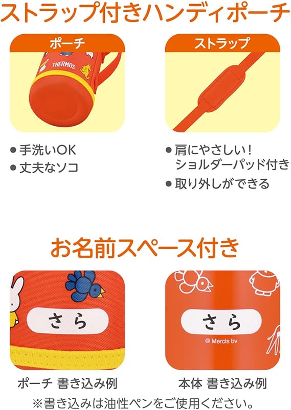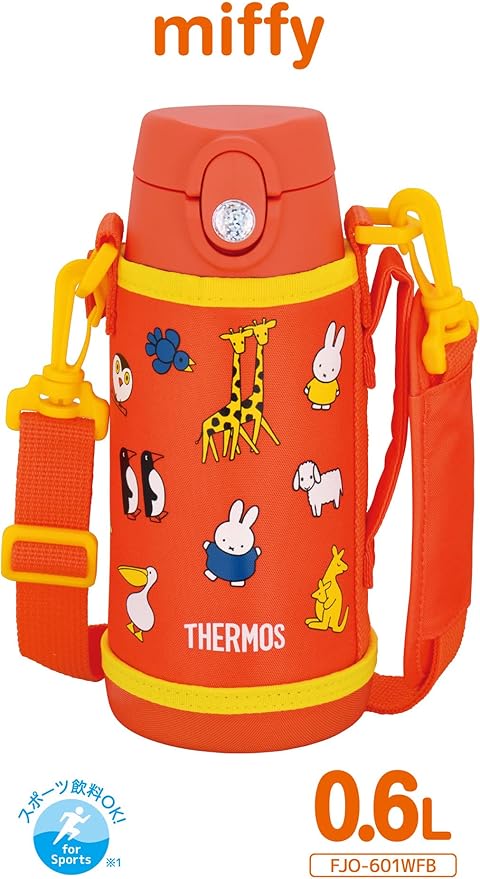 サーモス 水筒 真空断熱2ウェイボトル 0.6L/0.64L ミッフィー オレンジ ストロー コップ 子供用 通園通学 FJO-601WFB OR a