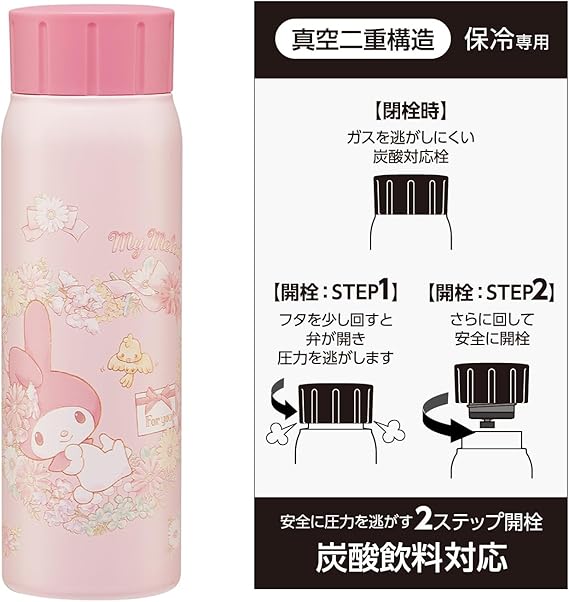 スケーター(Skater) 炭酸 飲料 対応 真空 ステンレス ボトル 水筒 500ml 直飲み 保冷専用 マイメロディ ペイント サンリオ 子供 キッズ 大人 おしゃれ STSL5 a