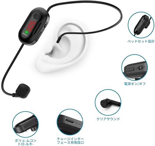 ワイヤレスマイク 無線マイク ステージポータブル拡声器 50メートル伝送範囲 自動ペア 音量調整 耳掛式 日本語説明書付き a