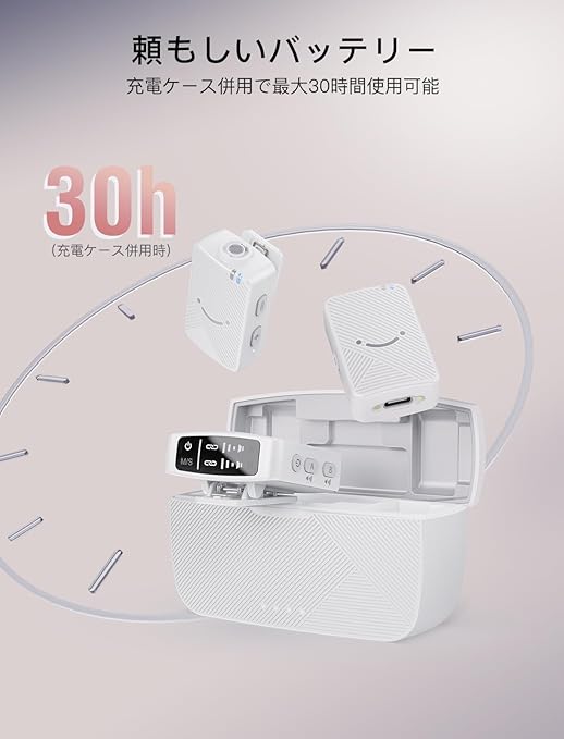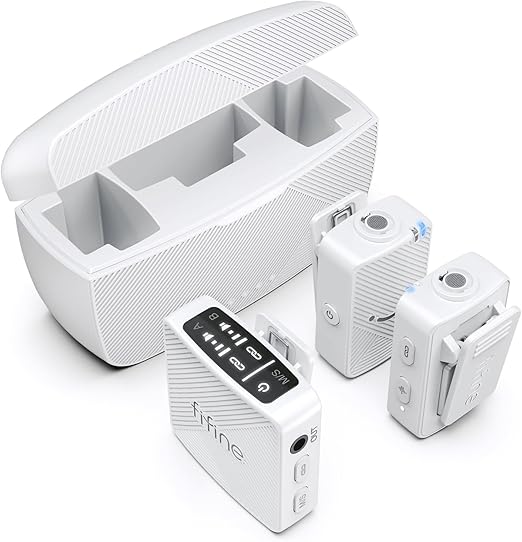 FIFINE ワイヤレスマイク ピンマイク 6時間連続使用 ノイズキャンセリング 2人同時使用可能 収納充電ケース付き 自動ペアリング 50m伝送距離 ミュート機能 カメラ スマホ 外付けマイク iPhone/iPad対応 オンライン授業 Vlog撮影 動画配信 生放送 インタビュー 白 M9W a