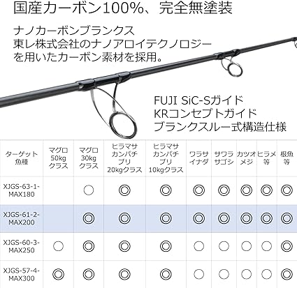 対応ルアーウエイト:Max~200g / 対応PEライン:~4号 / 対応リーダーライン:~80lb