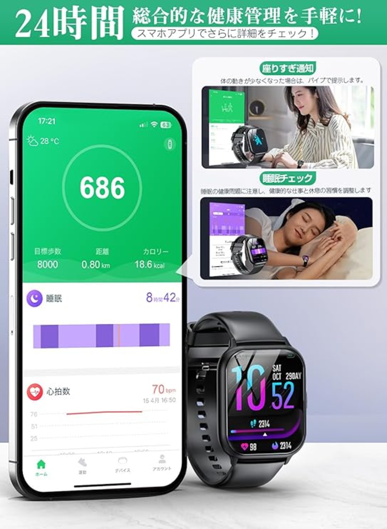 スマートウォッチ【2025新型?性能最強モデル】Bluetooth通話機能 1.85インチHD大画面 SMS/Line通知 薄型軽量 バンド交換可能 スマートウォッチ iPhone対応&アンドロイド対応 音楽再生 活動量計 多機能スマートウォッチ 様々な種類運動モード IP68生活防水 メッセージ通知 腕時計 天気予報 スポーツウォッチ レディース メンズ Smart Watch 多種類文字盤 a