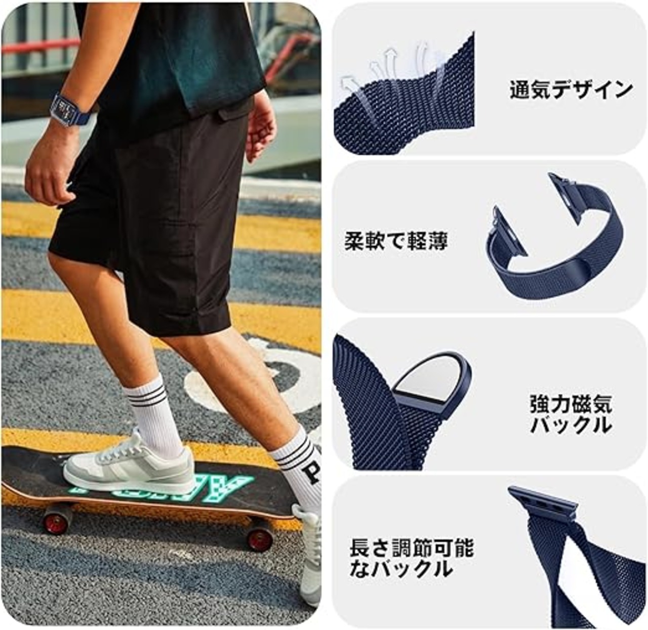 コンパチブル Apple Watch バンド 49mm 46mm 45mm 44mm 42mm 41mm 40mm 38mm コンパチブル アップルウォッチ バンド マグネットクラスプ ステンレス鋼 メッシュ 通気 長さ調節 男女兼用Apple Watch Series 10/9/8/7/6/5/4/3/2/1/Ultra/SE に対応 (49/46/45/44/42mm(Series 3/2/1), ブルー) a