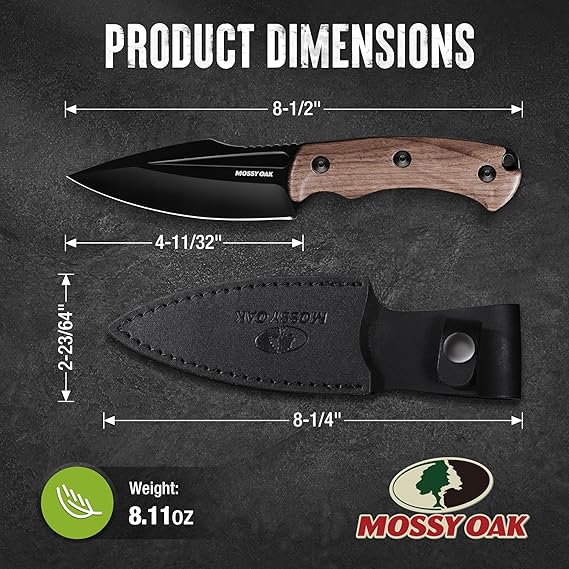 MOSSY OAK ナイフ アウトドアナイフ シースナイフ フルタング構造 全長215mm 天然ウッドハンドル 登山 キャンプ トレッキング 釣り 家庭用 DIY用 防災用 専用シース付き a