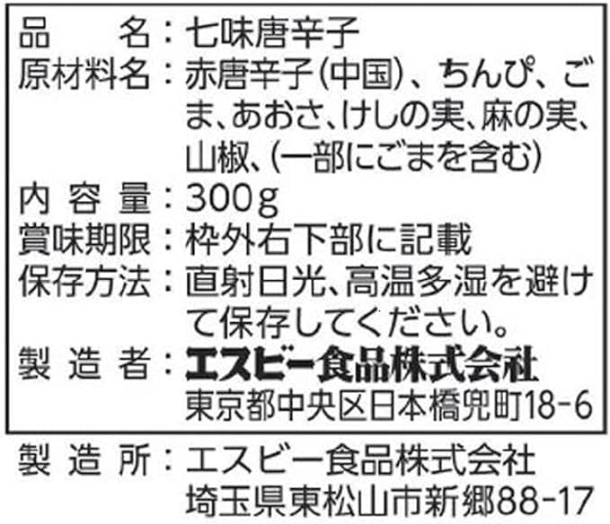 原材料:赤唐辛子、ちんぴ、ごま、あおさ、けしの実、麻の実、山椒、(一部にごまを含む)