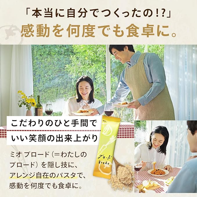 香味野菜などで作るイタリアの基本だし「ブロード」が主役のパスタ用調味料です。