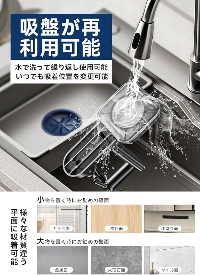 【革新の強力吸盤】弊社のキッチンツールフックは、全面的にアップグレードされた第4代の真空吸盤を使用しています。高品質の材料を採用、外殻はABSで、吸盤と壁の接続部分は最新のTPE材料で作られ