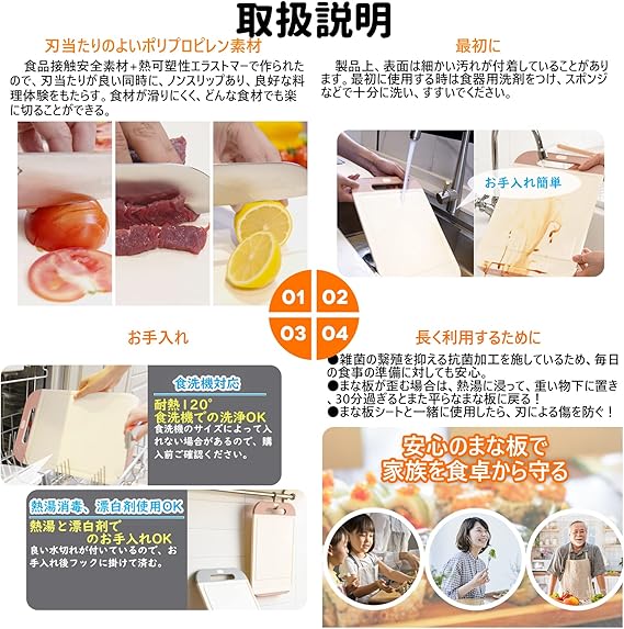 【基本仕様】まないたサイズ:34.4*23.2*0.9cm 本体:ポピプロピレン(PP)+縁側:軽量熱可塑性エラストマー(TPR)。食品グレード原材料が日本衛生基準合格。化合物なし!有害残り物なし!抗菌防カビ抜群!キッチンだけでなく、私達はキャンプ達人に大きいま