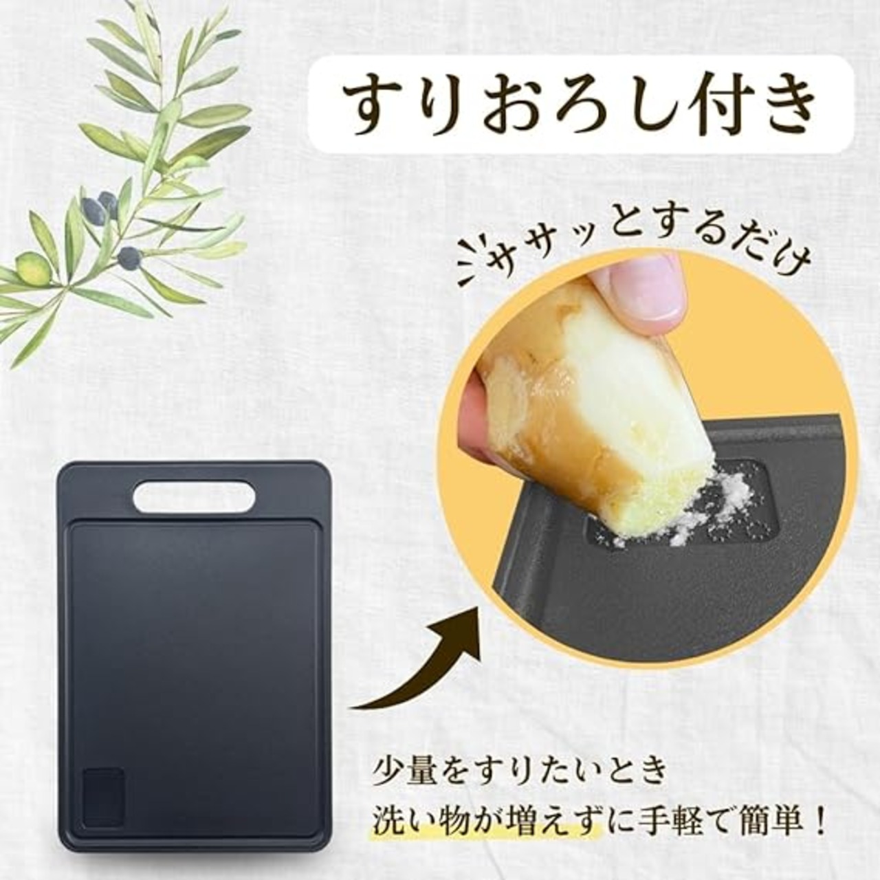 【汁こぼれ防止&すりおろし機能】周囲の溝付き設計が食材の汁をキャッチし、キッチンを汚しません。さらに、すりおろし機能付きで、生姜やにんにくを簡単にすりおろせる便利な