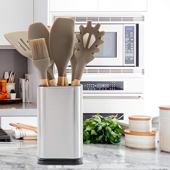 ステンレス製の キッチンツールスタンド お箸立て 調理器具ホルダー スプーン・フォーク・トング ・お玉等のキッチン器具と小物収納 水切り 乾燥し易い 錆びない シルバー 加厚型 安定感有り 倒れにくい a a