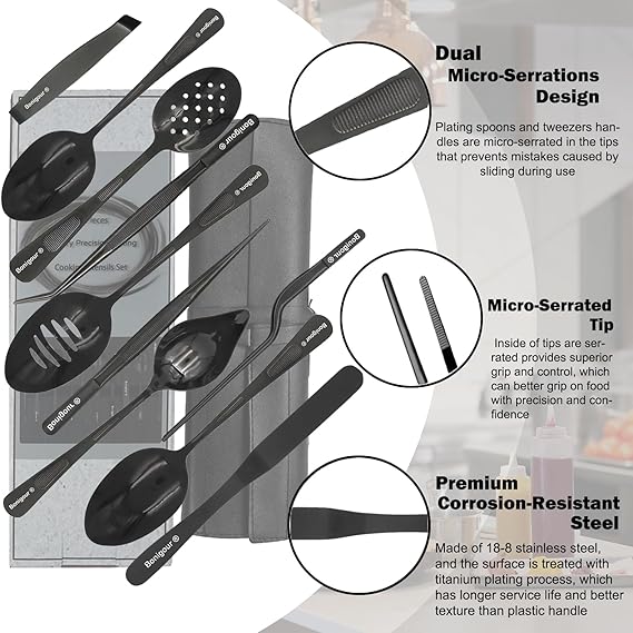 Bonigour|メッキツール料理セット|11 点セット|プロフェッショナルシェフメッキツールプロキット|キッチンメッキツール|モダニズム料理フードアート|ステンレススチール|ブラック a a
