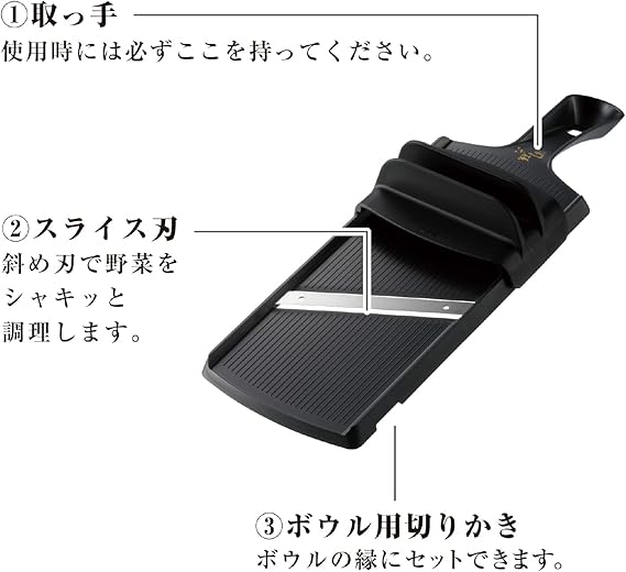 素材・材質:本体=ABS樹脂(耐熱温度90度)、刃部=ステンレス刃物鋼、指ガード=ポリプロピレン(耐熱温度90度)