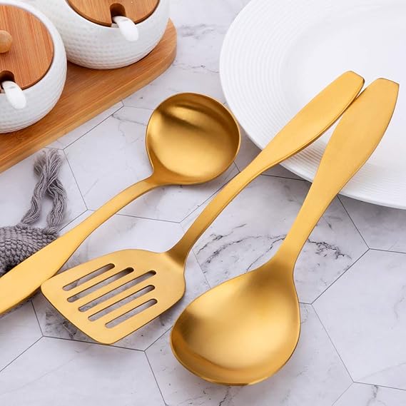 キッチンツールセット 調理器具 6点セット ミニサイズ 18-8ステンレス つや消し 堅牢 継ぎ目なし 洗いやすい フライ返し レードル 取り分けスプーン サラダフォーク しゃもじ ケーキサーバー 家庭 宴会 アウトドア キャンプ用 (ゴールド) a a