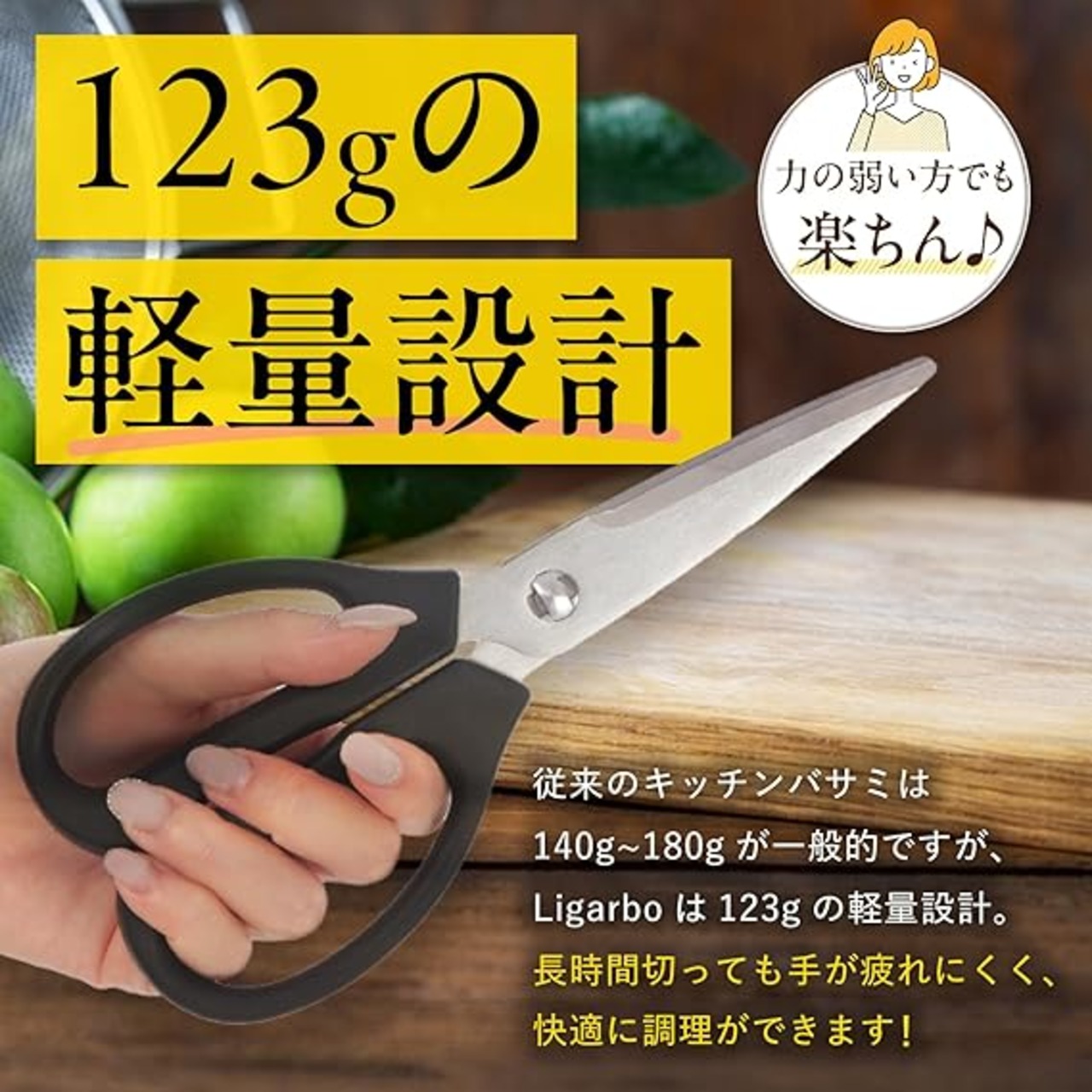 Ligarbo(リガーボ) キッチンバサミ【ソムリエ/料理人推薦】 調理バサミ 料理ハサミ 軽い力でも切れる 分解して洗える 食洗機対応 軽量設計123g (ブラック) a a