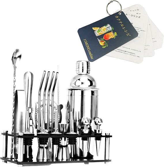 カクテルシェーカー 最多個数 20点セット カクテルレシピ付き バーテンダー セット ツール ステンレス製 業務用 550ml a a