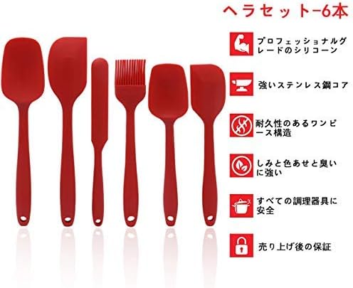 シリコン キッチンツールセット 6点 多機能調理器具セット 耐熱・耐冷 調理用スプーン おたま フライ返し トング スパチュラ 食器洗い機対応 レッド a a