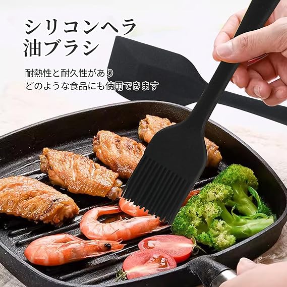 【高品質シリコーン】当社のヘラとオイルブラシは高品質の食品グレードのシリコーンで作られています。 耐熱性があり、すべての調理器具に適しており、ノンスティック