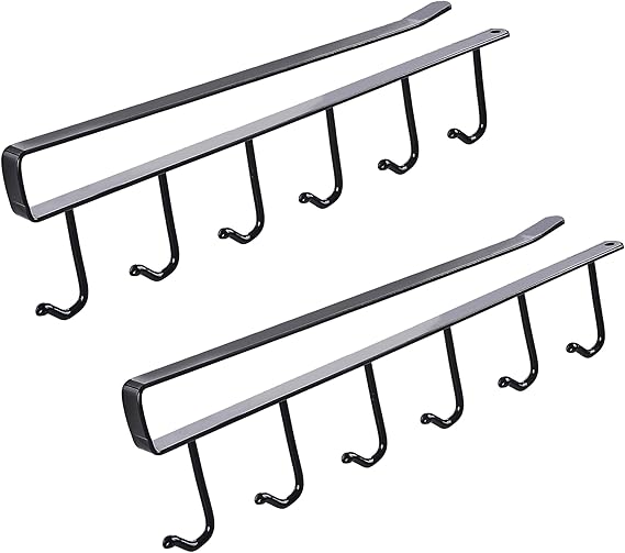 VECELO キッチンツールフック(2個セット) キッチンフック 6連フック 戸棚下キッチンツールフック ドアフック 多機能収納フック 吊り下げタイプ キッチンツール収納フック 収納フック 省スペース 頑丈で耐久性がある 穴あけなし 棚下 フック ネジなしキッチンツールフック ロッカー ブラック a a