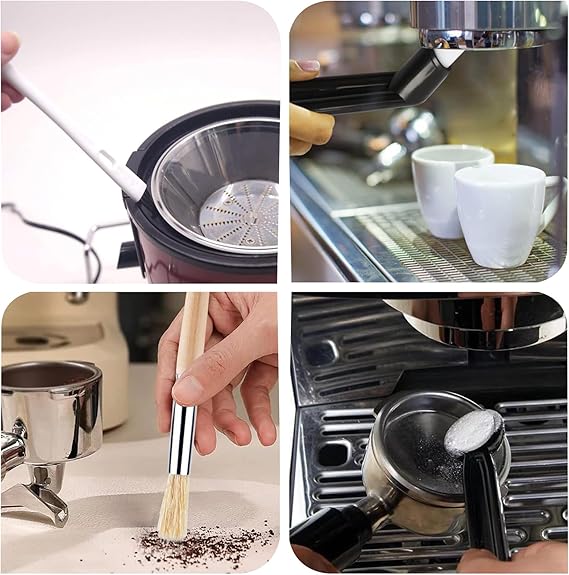 【効率的な洗浄、粉残りなし】: このセットは、コーヒーマシンの掃除しにくい隙間のために特別に設計されています。コーヒーグラインダーの粉や油汚れを素早く洗浄し、コーヒーの味に影響を与える残留物を防ぎます。