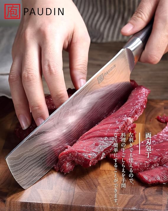 多機能菜切り包丁: PAUDINの菜切り包丁は、肉、野菜、果物などあらゆる食材に対応する万能包丁です。 あらゆる食材のカット、みじん切り、千切りに最適です。日常のキッチン作業でもよく使われ、プロの料理人だけでなく、家庭料理の初心者にも向いています。使いやすく、様々な食材の調理に柔軟に対応できるため、料理好きな方におすすめ包丁です。