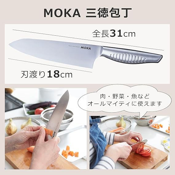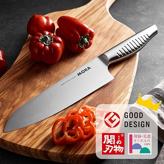 国際的に活躍する工業デザイナー川上元美と刃物で名高い関の高度な技術とのコラボレイトで生まれた包丁、MOKA(モカ)シリーズ